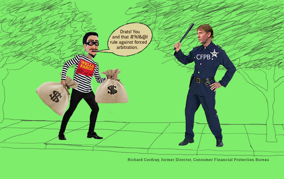 Wells Fargo became a poster child for corporations that abuse their own customers last year when it got fined for ginning up roughly 2 million (maybe even more) fake accounts to meet high sales goals. The bank has since tried to block customer lawsuits over that misconduct, using fine print buried in contracts known as the forced arbitration clauses, which force customers to go not before judges but a secretive non-judicial process to get relief.